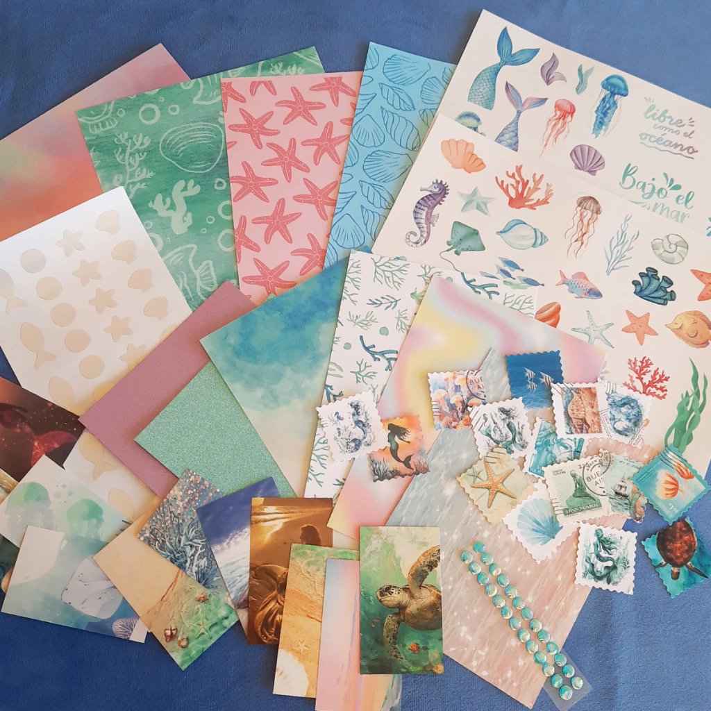 Set de papeles y stickers con temática BAJO EL MAR 🐚🪸