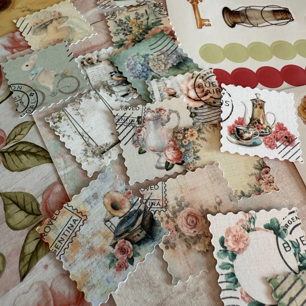 Set de papeles y stickers con temática SHABBY CHIC 🎀🌷🕰️